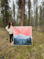 I was inspired to paint this piece after seeing this view every morning driving into downtown Whitehorse. Living north of town, Mount Lorne always meets the eye driving south. A wintery Mount Lorne is my favourite because the warm sunrise colours that hit the snowy slopes give off the most calming and beautiful feeling.